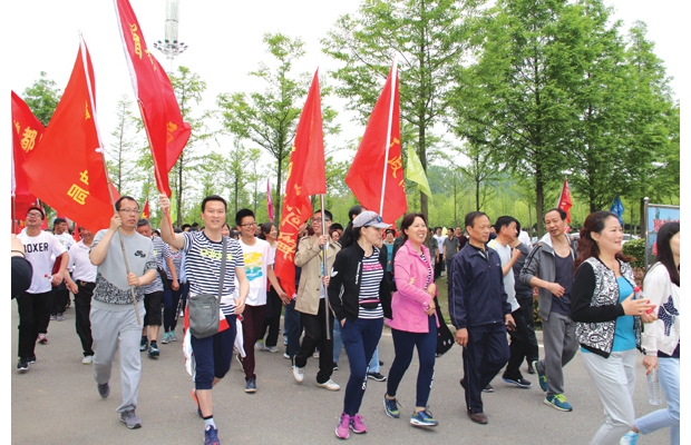 隨州網訊 4月25日,隨州市曾都區在濱湖體育運動場舉辦了一場以“創衛、綠色、環保、健康”為主題的健步行活動。健步行全程共7.4公里,來自全區各鎮、辦事處、管委會和區直68個部門的約2000余名干部職工參與了此次活動。(記者 唐天才 通訊員 謝 曉攝) |
