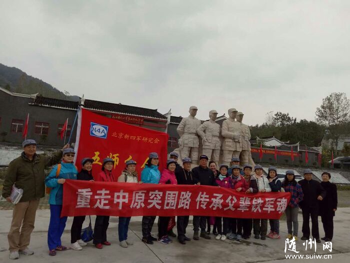 隨州網(wǎng)訊 本報(bào)記者 陳巧玲 通訊員 楊倩倩 今年是中原突圍勝利70周年。為緬懷先輩,弘揚(yáng)偉大的中原突圍精神,10月中下旬,北京新四軍研究會(huì)五師中原分會(huì)組織部分新四軍第五師后代,開(kāi)展“重走中原突圍路,傳承父輩鐵軍魂”活動(dòng)。10月28日,考察團(tuán)一行走進(jìn)隨州,追尋先輩在這里浴血奮戰(zhàn)的足跡。 據(jù)了解,重走“中原突圍路”活動(dòng)的成員均為新四軍五師中原突圍部隊(duì)的后代,包括原新四軍五師王定烈 (原中原軍區(qū)第一縱隊(duì)二旅四團(tuán)團(tuán)長(zhǎng)、開(kāi)國(guó)將軍、中國(guó)人民解放軍空軍原副司令員)的女兒王娟娟等新四軍五師后代一行近20人?疾靾F(tuán)一行自10月中旬從湖北大悟出發(fā),沿李先念部(二縱)突圍路線去,沿王樹(shù)聲部(一縱)突圍路線回,一路上憑吊戰(zhàn)場(chǎng)、尋訪戰(zhàn)爭(zhēng)遺址、參觀革命紀(jì)念館等。 在隨期間,考察團(tuán)先后參觀了隨州市曾都區(qū)洛陽(yáng)鎮(zhèn)九口堰革命舊址、九口堰新四軍第五師舊址紀(jì)念園等。他們一路聽(tīng)著講解員的講解,用相機(jī)記錄著父輩的足跡,感受父輩們當(dāng)年戰(zhàn)斗和工作的環(huán)境,回憶著父輩戰(zhàn)斗的歷程。在九口堰新四軍第五師舊址門(mén)口,參加考察活動(dòng)的成員朱顏,左手拿著姥爺龐俊青年時(shí)代的黑白照片,右手按下快門(mén),拍下一組特別的紀(jì)念照。 “這里也是他曾經(jīng)戰(zhàn)斗過(guò)的地方!”朱顏說(shuō),這次重走 “中原突圍路”活動(dòng)中,她隨身帶著姥爺?shù)恼掌,每到一個(gè)姥爺戰(zhàn)斗過(guò)的地方,都為他留一張影。 “這是一次意義非常的尋訪,紀(jì)念革命先烈,傳承先輩精神,提醒我們要不忘過(guò)去、不忘初心……”北京新四軍研究會(huì)五師中原分會(huì)副會(huì)長(zhǎng)李炎說(shuō),隨州是新四軍五師發(fā)展壯大的發(fā)源地之一,是老一輩曾經(jīng)戰(zhàn)斗過(guò)的地方,新四軍五師后代考察團(tuán)對(duì)這片熱土充滿感情。在九口堰新四軍第五師舊址紀(jì)念園,李炎代表考察團(tuán)一行捐贈(zèng)了他們的最新研究成果——《鐵流》系列叢書(shū);隨州市新四軍歷史研究會(huì)也向考察團(tuán)回贈(zèng)了新研究成果——?dú)v史研究文獻(xiàn)《李先念在隨州》。李炎表示,要進(jìn)一步研究好、宣傳好革命歷史,將先輩們的革命意志和革命精神傳承下去,讓新四軍精神代代相傳! |