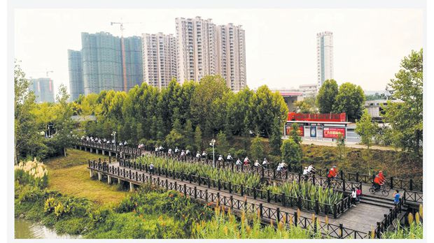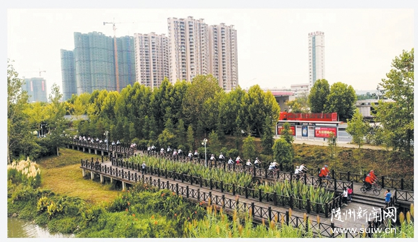 隨州新聞網(wǎng)訊 清晨,一群人沿著隨城白云湖邊騎行,穿行在湖光美景中,盡享城市發(fā)展帶來的高品質(zhì)生活。(隨州日?qǐng)?bào)全媒體記者 李文軍攝) |