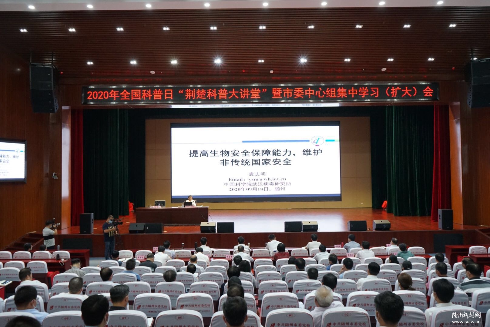 隨州日報(bào)訊(全媒記者張琴)9月18日,2020年全國科普日“荊楚科普大講堂”暨市委中心組集中學(xué)習(xí)(擴(kuò)大)會舉行,邀請中國科學(xué)院武漢病毒研究所研究員、武漢國家生物安全實(shí)驗(yàn)室主任袁志明作《提高生物安全保障能力,維護(hù)非傳統(tǒng)國家安全》科普報(bào)告。