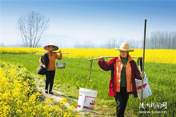 隨縣安居鎮劉家臺子村村民正在平整育秧稻田。 隨州高新區淅河鎮魏家老灣村村民田間除草歸來。 人勤春來早,農事催人忙。隨著氣溫回升,近日各地農村田間到處是一派春播春種的忙碌景象,農民忙著春耕春管,為豐收打下基礎。(隨州日報全媒記者李文軍攝) |