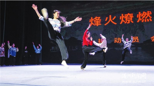 | 為慶祝中國共產(chǎn)黨成立100周年,隨州花鼓藝術(shù)劇院新編隨州花鼓戲《烽火燎燃》日前正在緊張排練。該戲以原中共隨縣縣委書記兼中國工農(nóng)紅軍第九軍第二總隊黨代表李彩奇烈士為原型,反映了他光輝戰(zhàn)斗的一生。(隨州日報全媒記者孫洪濤攝) |