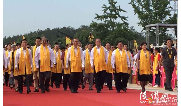 海內(nèi)外近萬炎黃子孫再聚烈山拜謁始祖 馬飚許嘉璐張榮恭李鴻忠楊松等出席 隨州網(wǎng)訊 記者陳曉林報(bào)道:同根同祖,血濃于水;同心同愿,祈福中華。2015年6月12日,農(nóng)歷四月二十六,乙未年世界華人炎帝故里尋根節(jié)開幕式暨拜祖大典在湖北隨州隆重舉行。海內(nèi)外近萬名炎黃子孫再聚烈山,拜謁中華民族的人文始祖炎帝神農(nóng)氏,緬懷圣祖功德,祈愿國泰民安、人民幸福。 全國政協(xié)副主席馬飚,第十屆全國人大常委會(huì)副委員長(zhǎng)、中華炎黃文化研究會(huì)會(huì)長(zhǎng)許嘉璐出席大典。 中國國民黨中央評(píng)議委員會(huì)主席團(tuán)主席張榮恭,中共湖北省委書記、省人大常委會(huì)主任李鴻忠,湖北省政協(xié)主席楊松,海峽兩岸關(guān)系協(xié)會(huì)副會(huì)長(zhǎng)孫亞夫,中國文學(xué)藝術(shù)界聯(lián)合會(huì)副主席、書記處書記楊承志,中華全國歸國華僑聯(lián)合會(huì)副主席康曉萍,中華炎黃文化研究會(huì)常務(wù)副會(huì)長(zhǎng)兼秘書長(zhǎng)張希清,衛(wèi)生部原副部長(zhǎng)、世界中醫(yī)藥學(xué)會(huì)聯(lián)合會(huì)會(huì)長(zhǎng)佘靖,省領(lǐng)導(dǎo)李春明、傅德輝、梁偉年、甘榮坤、劉善橋,省老領(lǐng)導(dǎo)李明波、林志慧,陜西省政府原副省長(zhǎng)吳登昌,海峽兩岸旅游交流協(xié)會(huì)秘書長(zhǎng)劉克智,中國科學(xué)院院士陳可冀,中國工程院院士李連達(dá),泰國國防宗教文化部副主席周力平,全美華裔總商會(huì)主席梁冠軍,香港特區(qū)政府駐漢代表方明遠(yuǎn),澳門特區(qū)政府駐京代表束文剛,臺(tái)灣苗栗縣前縣長(zhǎng)劉政鴻,中國國民黨中央委員會(huì)常務(wù)委員曾文培,中國國民黨中央委員會(huì)委員翁文斌、詹昭榮,臺(tái)灣中華神農(nóng)大帝協(xié)進(jìn)會(huì)副理事長(zhǎng)方雕義,抗戰(zhàn)老兵靳明、孫維禮,中共隨州市委書記劉曉鳴、市長(zhǎng)郄英才等參加大典。 今日的隨州,陽光燦爛,惠風(fēng)和暢、生機(jī)盎然。炎帝故里景區(qū)門前,鑼鼓喧天,載歌載舞。炎帝圣像莊嚴(yán)偉岸,令人起敬。嘉賓們懷著崇敬的心情,陸續(xù)步入拜祖廣場(chǎng),共同期待著激動(dòng)人心的一刻。 上午8時(shí)38分,在《詩經(jīng) 小雅 鹿鳴》的兒童吟誦聲中,大典開始。經(jīng)過奉祀方陣入場(chǎng)、祭祀舞蹈《八佾舞》等環(huán)節(jié),大典進(jìn)入拜祖儀式。副省長(zhǎng)甘榮坤主持儀式。拜祖儀式共有九項(xiàng)儀程: ——大典致辭。甘榮坤致歡迎辭。他說,“編鐘鳴盛世,心香敬始祖。今天,來自世界各地的炎黃子孫齊聚烈山,慎終追遠(yuǎn),共拜始祖。……無論時(shí)代如何變遷,炎帝精神始終是中華民族自強(qiáng)不息的力量源泉,始終是炎黃子孫團(tuán)結(jié)奮斗的精神旗幟,激勵(lì)著中華民族從遠(yuǎn)古走向文明,從蒙昧走向輝煌! ——大典開幕。第十屆全國人大常委會(huì)副委員長(zhǎng)、中華炎黃文化研究會(huì)會(huì)長(zhǎng)許嘉璐宣布大典開幕。 ——恭啟圣門。全國政協(xié)副主席馬飚和中共湖北省委書記、省人大常委會(huì)主任李鴻忠共同開啟炎帝神農(nóng)大殿圣門。 ——點(diǎn)燃圣火。在《三獻(xiàn)禮》的唱誦樂舞聲中,中國科學(xué)院院士陳可冀、香港特區(qū)政府駐漢代表方明遠(yuǎn)、澳門特區(qū)政府駐京代表束文剛、臺(tái)灣中華神農(nóng)大帝協(xié)進(jìn)會(huì)副理事長(zhǎng)方雕義和來自全國的30名鄉(xiāng)村教師共同點(diǎn)燃炎帝圣火。 ——敬獻(xiàn)花籃。各級(jí)領(lǐng)導(dǎo)和嘉賓馬飚、許嘉璐,張榮恭、劉政鴻、曾文培、孫亞夫、楊承志、康曉萍、張希清,李鴻忠、楊松、李春明,甘榮坤,劉曉鳴、郄英才等分批敬獻(xiàn)花籃。 ——敬獻(xiàn)高香。華人華僑、港澳臺(tái)人士、文化界、企業(yè)界、宗教界等各界代表劉克智、周力平、梁冠軍、姚征、胡曉軍、馬克、翁文斌、詹昭榮、陳興國、陳雄英,劉紅軍、佘靖、李連達(dá)、吳登昌、任學(xué)安、米東明、李抗美、劉富民、孫光榮、余世存、常文光、張杰、鄧建玲、何亞非、焦正軍、邱曙平、嚴(yán)介和、汪力成、曾穎堂、莫躍明、陳宏志、田長(zhǎng)桉、劉俊剛、尼瑪扎西、沈田義、劉廣東、劉寶林、徐德、釋印順、吳誠真等依次敬獻(xiàn)高香。 ——恭讀頌祖文。炎帝子孫代表恭讀《頌炎帝文》(全文另發(fā))。 ——共拜始祖,F(xiàn)場(chǎng)全體人員向炎帝神農(nóng)行施拜禮。 ——唱誦始祖。合唱《炎帝大歌》,將頌揚(yáng)炎帝功德的贊歌再次唱響在烈山之上。隨后,匯聚世界各地華人心聲的《赤子之聲》,表達(dá)了海內(nèi)外華人華僑對(duì)祖國民族的認(rèn)同,對(duì)中華文化的守望,對(duì)身為炎黃子孫的驕傲和自豪。由海峽兩岸學(xué)子共同表演的編鐘樂舞《神農(nóng)贊》,以及壓軸歌曲《炎帝情,中華夢(mèng)》,引爆了唱誦的高潮。 在熱烈祥和的氣氛中,簡(jiǎn)樸而隆重的拜祖大典告成。參加大典的嘉賓們稱贊,今年的拜謁大典,既嚴(yán)格遵循了規(guī)制,又與時(shí)俱進(jìn)地增添了社會(huì)主義核心價(jià)值觀、“一帶一路”戰(zhàn)略、抗戰(zhàn)勝利70周年等新元素,大氣磅礴,令人難忘。 大典由國務(wù)院臺(tái)灣事務(wù)辦公室、國家旅游局、中國文學(xué)藝術(shù)界聯(lián)合會(huì)、中華