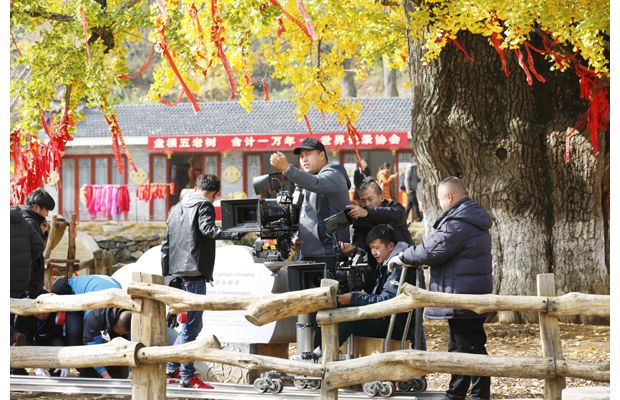 10時許,劇組開始正式拍攝。不一會兒,在千年銀杏谷內游玩的游客聞聲紛紛趕來圍觀,不少游客都是攝影愛好者,“長槍短炮”一下子都對準了劇組的拍攝現場!敖裉爝\氣真好,來看銀杏還能看到拍電視劇的!眮碜晕錆h的游客錢先生說。