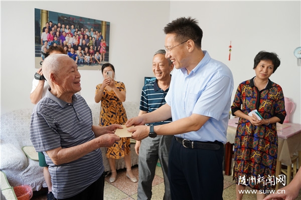 隨州日報(bào)訊(全媒記者劉詩詩)9月3日是中國人民抗日戰(zhàn)爭暨世界反法西斯戰(zhàn)爭勝利75周年紀(jì)念日,市長克克帶隊(duì)走訪慰問參加過抗日戰(zhàn)爭的老戰(zhàn)士老同志和抗戰(zhàn)烈士遺屬代表,感謝他們?yōu)辄h和國家作出的貢獻(xiàn),向他們致以崇高的敬意和誠摯的問候。