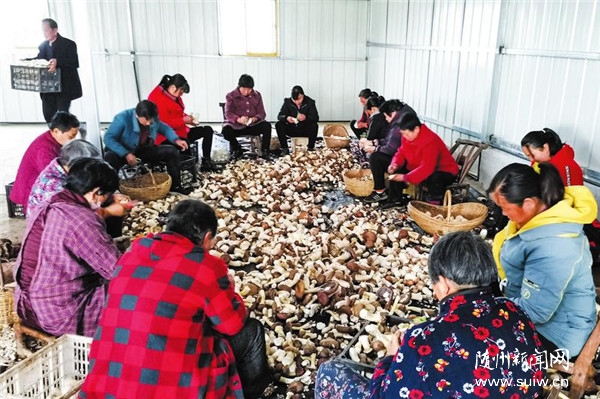 | 隨縣高城鎮羅家橋村鴻福興食用菌種植專業合作社利用國家財政扶貧產業發展資金種植的赤松葺菌菇喜獲豐收。圖為3月15日,該村近30名脫貧戶參與菌菇采摘、分揀、去雜、切片、烘干等工作,人均月收入近3000元。(隨州日報全媒記者李文軍、通訊員韓鐵流攝) |