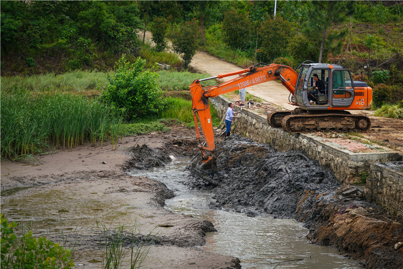 隨縣殷店鎮雄峰村美麗家園共同締造項目日前已經拉開序幕。5月8日,施工人員開始對該村的堰塘進行維護升級。在施工現場,村民們說,感謝黨的好政策,讓我們農村越來越美麗。(全媒記者 孫洪濤攝)