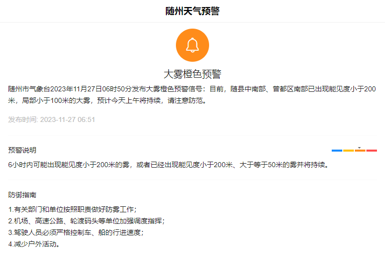 因霧,臨時關閉入口的有:G0421許廣高速淮河至宋河段;G0422武深高速潘家灣至五里牌段;G0424武大高速河口西至宣化店段;G4京港澳高速大新至大悟段、武漢南至安山段;G42滬蓉高速東西湖至沿渡河段、黃陂東至木子店段;G4201武漢繞城高速柏泉至花山段;G4213麻安高速鐵門西至芳畈段 、關廟至隨州南段、長坪至南漳段(安麻向);G4221滬武高速青龍至楊柳段;G45大廣高速乘馬崗至陽新西段;G50滬渝高速長陽至榔坪段、枝江至宜昌段、武東至武穴段、江夏站;G55二廣高速黃集至章莊鋪段;G56杭瑞高速全線;G59呼北高速遠安北至漁洋關段;G70福銀高速襄陽北至土關埡段、洛陽店至王城段;G7021武陽高速全線;S7武鄂高速全線;S13武監高速小軍山至螺山段;S29麻陽高速向明河至梅川段、陽新東站;S31黃咸高速馬曹廟至黃岡段;S33咸通高速馬橋至南林橋段;S37龜峰山高速龜峰山站;S40武漢四環線北湖站、梁子湖站;S4214武紅高速高橋站;S43孝洪高速太平至燕窩段;S48張太高速三峽大瀑布至太平溪段; S63雙尹高速峪山至余家湖段;S68翻壩高速全線;S73鄧保高速老河口西至冷集段;S78蘄嘉高速蘄春北至金牛段;S86赤洪高速瞿家灣至周郎嘴段;S88岳宜高速宜都北至松滋南段。