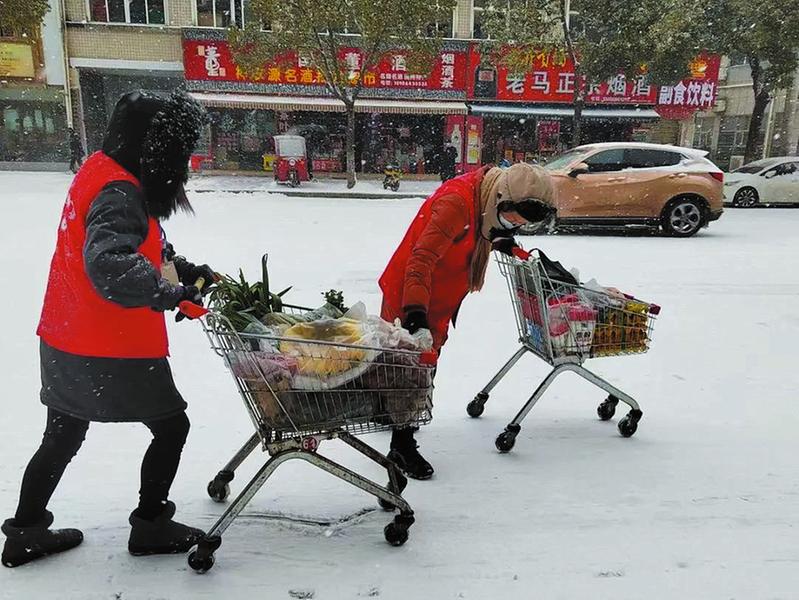 曾都區(qū)商務(wù)局積極行動,加強(qiáng)市場供應(yīng)監(jiān)測,確保居民生活必需品市場供應(yīng)不斷鏈。圖為給交通不便居民提供送貨上門服務(wù)。(隨州日報(bào)通訊員朱運(yùn)富攝)