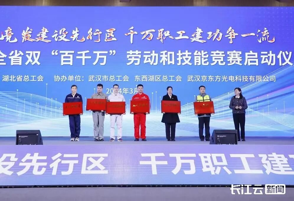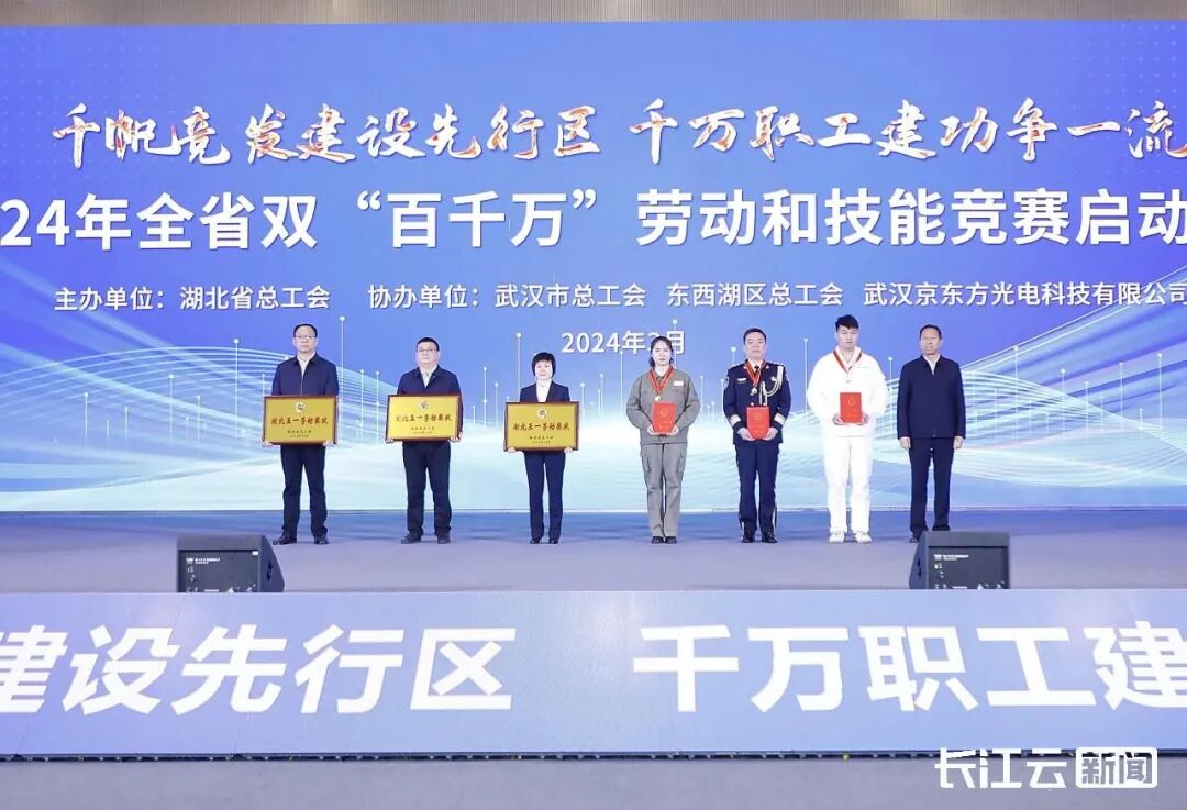 3月25日,2024年湖北省雙“百千萬”勞動和技能競賽啟動儀式在武漢舉行。會議宣讀了《湖北省總工會關于專項授予2023年全省勞動競賽先進集體和先進個人湖北五一勞動獎和工人先鋒號的通報》。
