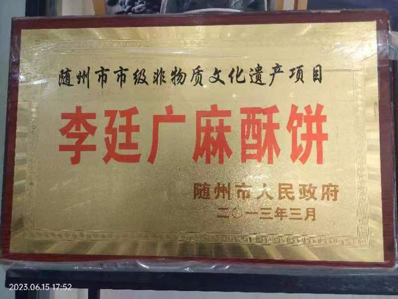 2013年李廷廣麻餅作為隨州代表性產品,其生產技藝被列為隨州市非物質文化遺產名錄。