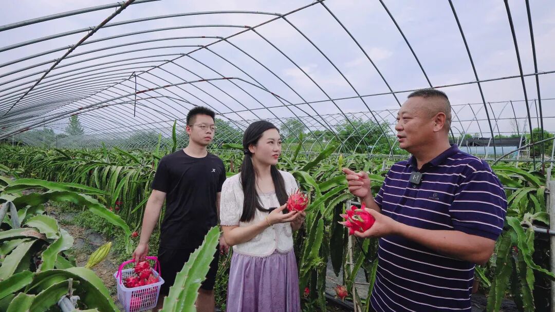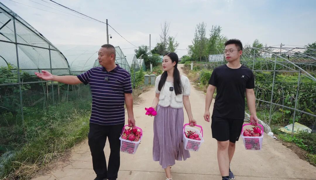 記者現(xiàn)場采摘了一個火龍果品嘗一下,感嘆道:火龍果軟滑清甜,口感嫩滑、香甜多汁,果然很好吃。