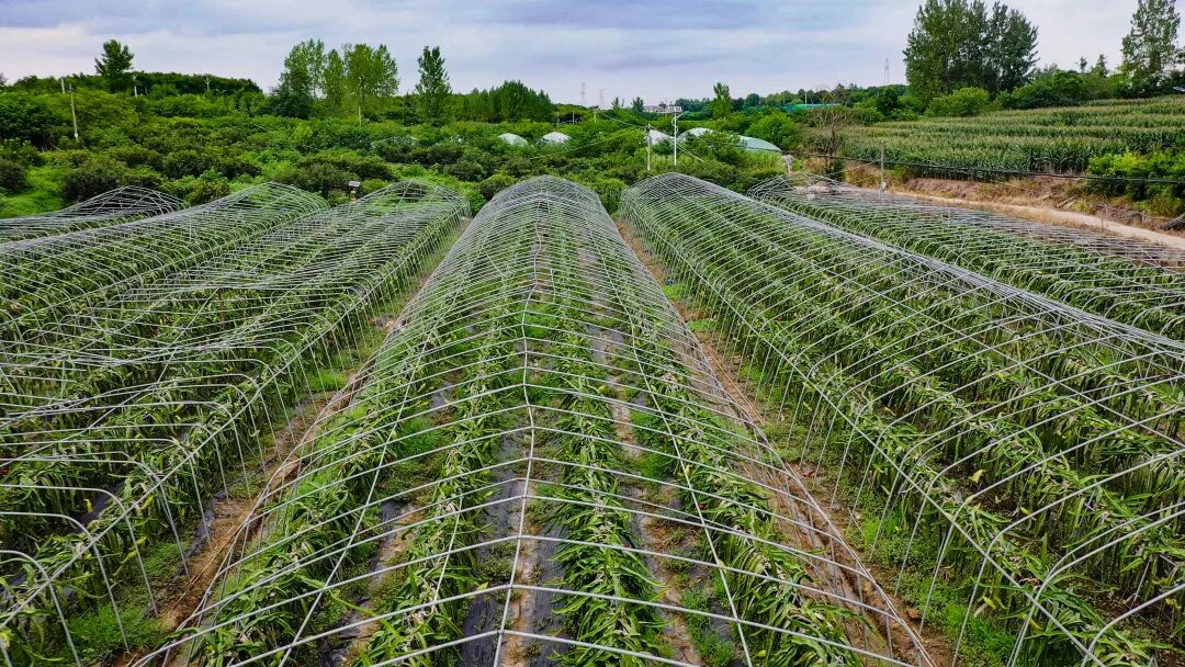 近日,走進隨州市曾都區(qū)南郊街道鄧家老灣村盛畝生態(tài)園火龍果種植區(qū),火龍果植株整齊排列,翠綠的枝條肆意伸展。