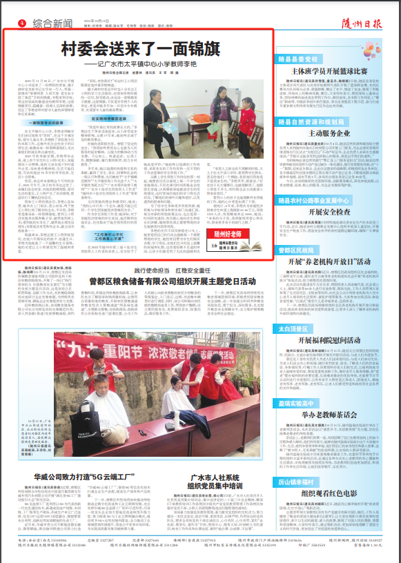 2021年11月25日,廣水市太平鎮(zhèn)中心小學(xué)迎來了一份特別的榮譽。貓子湖村黨支部書記左華安一行人,帶著一面繡有“厚德師恩人間天使 愛生如子園丁典范”字樣的錦旗,專程來到學(xué)校,將這份崇高的敬意送給教師李艷。這面錦旗背后,隱藏著一段感人至深的故事,見證了李艷老師對留守兒童的深情厚愛和無私奉獻。