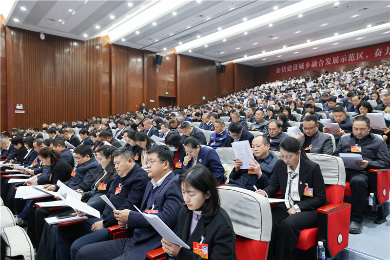 市五屆人大五次會議上,人大代表、政協(xié)委員認真聽取政府工作報告。(隨州日報全媒記者李文軍攝)