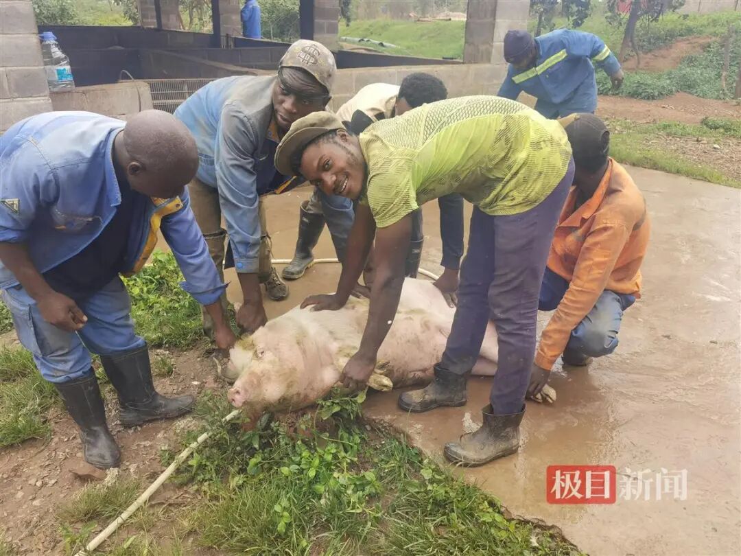 剛果(金)當地員工幫忙殺年豬