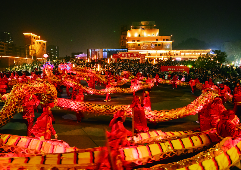 正月初六晚,“非遺過大年”國家級非遺王貴武龍燈展演在華新1907文化公園舉辦。活動現場,長達350米的王貴武龍燈震撼登場,精彩表演贏得陣陣喝彩。
