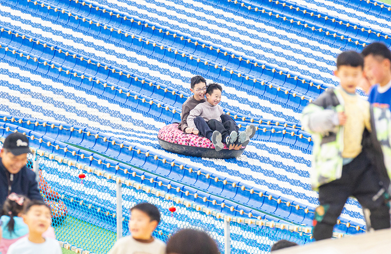 正月初六,游客在黃石華僑城恐龍奇域旅游度假區體驗游樂項目。