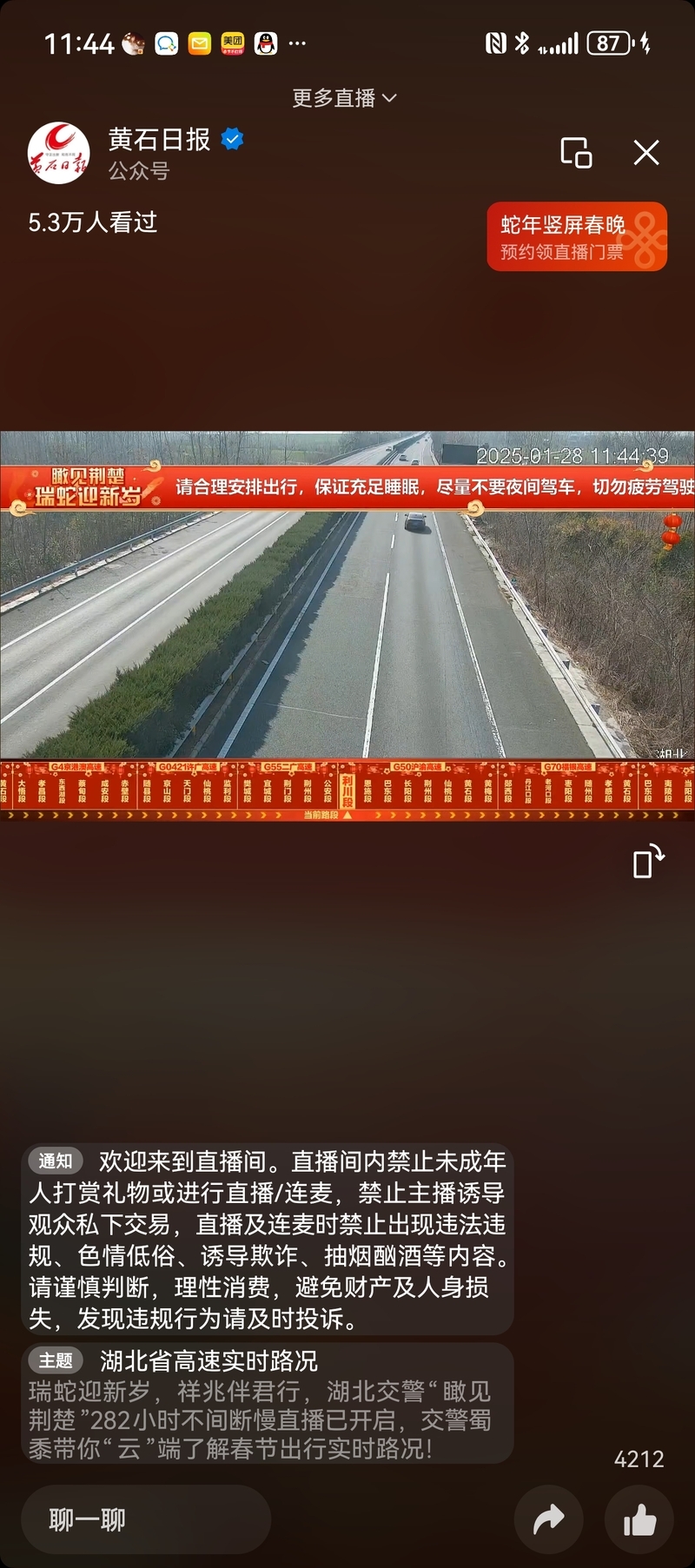 觀看“瞰見荊楚”高速公路實時路況慢直播的