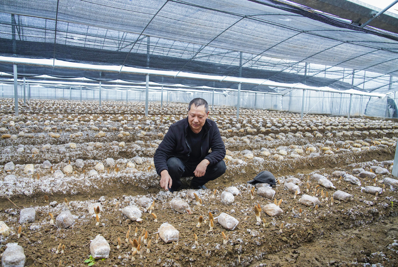 大箕鋪鎮方至畈村大棚蔬菜種植基地,羊肚菌搶“鮮”上市,村民采摘忙。