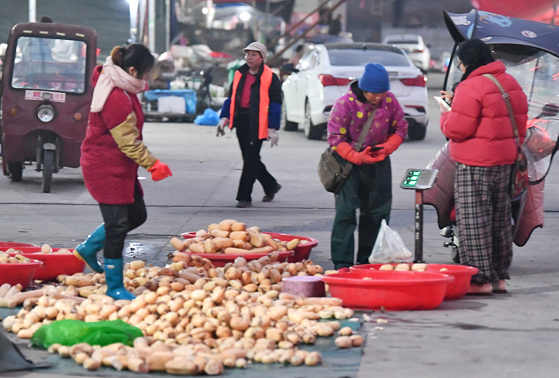 正月初二,市民在大冶市街頭欣賞英歌舞表演。
