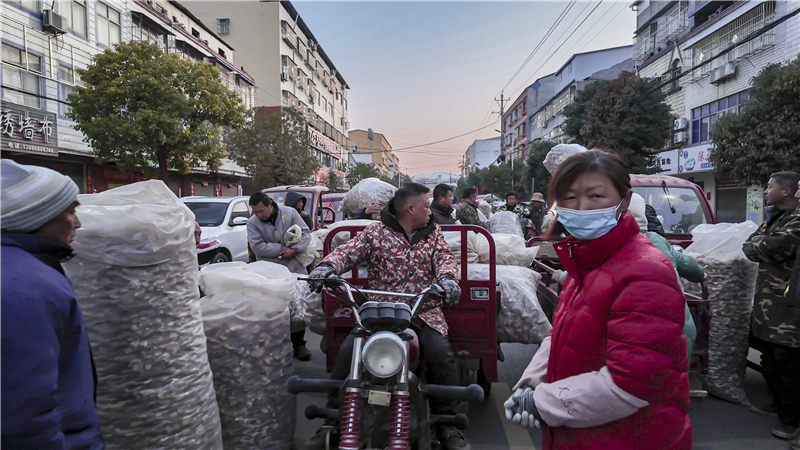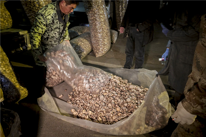3月17日凌晨4點,氣溫低至零下3度,殷店鎮楚北香菇木耳大市場卻是人山人海!拔以缟3點多就來了,每天都有菇販來這兒定點收購,根本不愁賣!惫睫r周春意盤起了小賬,從今年開市到現在,已經賣了2000多斤花菇,價值七八萬元。