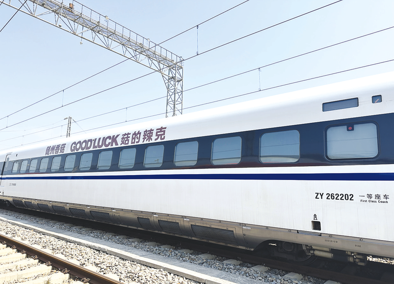 作為“隨州香菇 香飄世界”的系列宣傳之一,此次高鐵宣傳選擇了客流量比較大的兩條線路,復(fù)興號G2386宜昌-上海線與和諧號G1528襄陽-北京線,日均載客量超3500人次。在車體上印有明顯的“隨州香菇GOODLUCK菇的辣克”冠名字樣,車廂內(nèi)的頭枕巾、桌板貼、行李架彩貼、車廂出入口畫框等均有“隨州香菇”的宣傳字樣,LED顯示屏實(shí)時(shí)滾動(dòng)品牌標(biāo)語。此外,每站的語音播報(bào)均會(huì)推介“隨州香菇”。