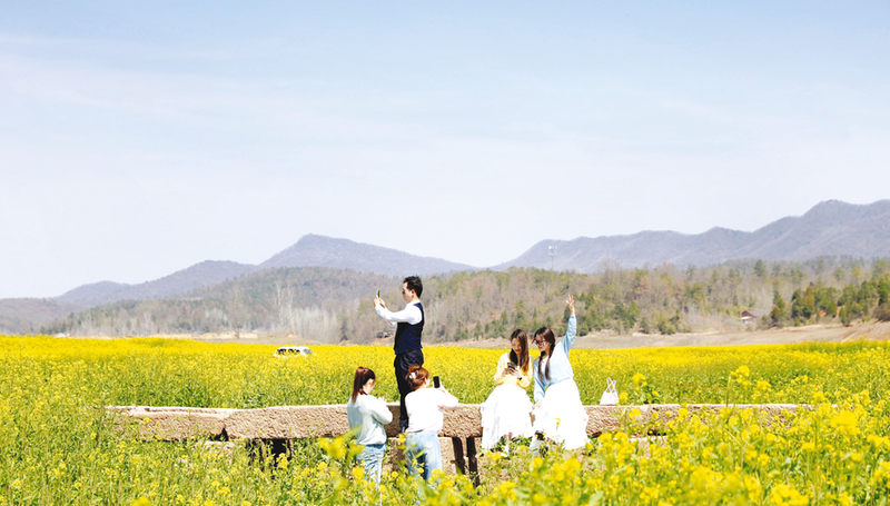 而鄭家河的3000余畝油菜花也不甘示弱,在春日的暖陽下盡情綻放。金黃的花海與碧波蕩漾的水庫交相輝映,構成了一幅靈動而壯闊的田園風光圖。那一片片金黃,如同給大地鋪上了金色的絨毯,與藍天、白云、綠水相互映襯,美不勝收。游客們置身其中,感受著“人在畫中游”的美妙意境,盡情享受著大自然的饋贈。