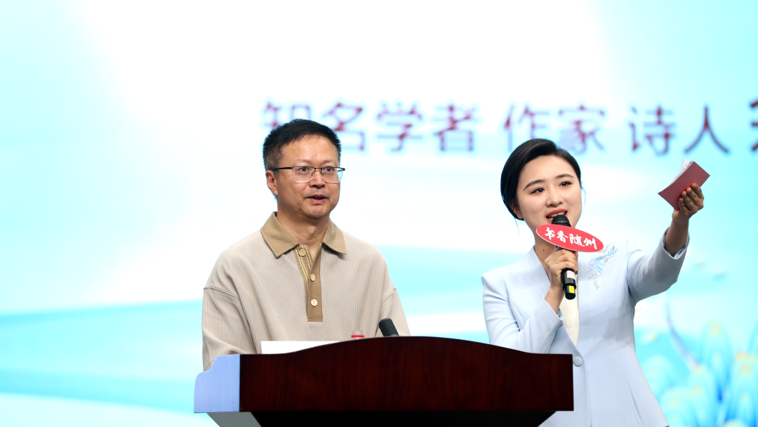 在眾人的期待中,隨州籍知名學者、作家、詩人余世存走上舞臺。他的出現,瞬間點燃了現場的熱情,掌聲雷動。身著簡約而不失儒雅的服裝,他帶著溫暖的笑容向大家致意,眼神中透著對家鄉深深的眷戀。