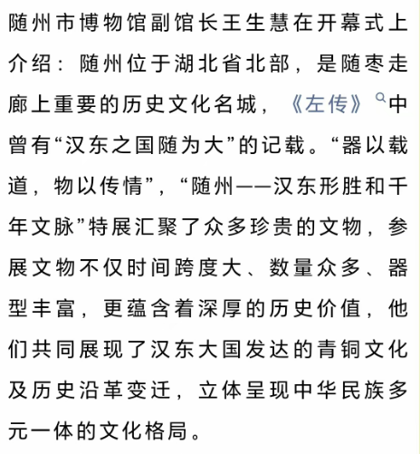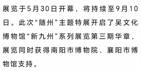 由吳文化博物館、隨州市博物館主辦的“隨州——漢東形勝和千年文脈”特展,是國內首個呈現隨州通史的特別展覽。