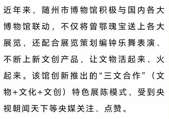 連日來,隨州市博物館深挖文物內涵和時代價值,聯手國內多家博物館全力打造精品展覽,讓曾鄂瑰寶走出湖北、閃耀全國。