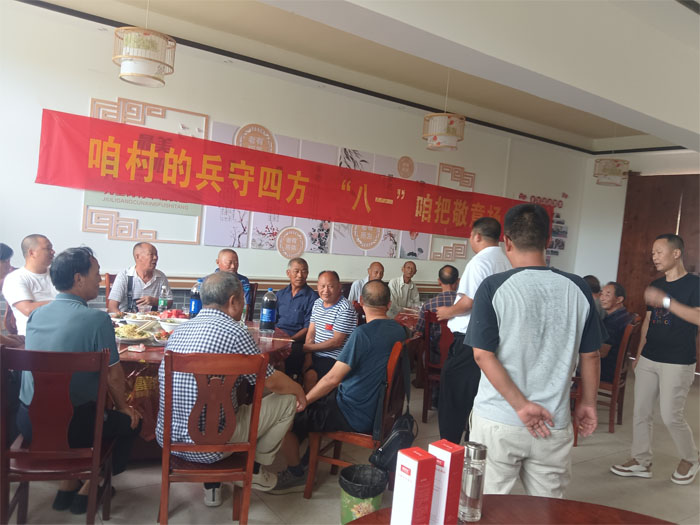 席間,大家圍坐在一起,憶往昔軍旅歲月,話如今家鄉發展。老兵們講述著當年在部隊的熱血故事,眼中閃爍著堅定的光芒,那是屬于他們的榮耀記憶。村干部們則認真傾聽,不時與老兵們交流,了解他們的生活近況與需求。