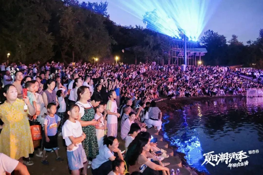 舞臺“搬”到湖面上,水幕化身天然巨屏,炫酷影像隨電音節拍流動,水霧中的光影秀多了一份朦朧美。7月30日晚,銀杏谷旅游度假區夏日潮玩季活動在新開園的千年銀杏谷景區啟動,F場,在湖面打造的音樂自然劇場內,水幕動畫、燈光秀、動漫秀,搭配潮流動感的音樂,一掃炎熱與疲憊,約3萬名游客共享這份清涼與浪漫。
