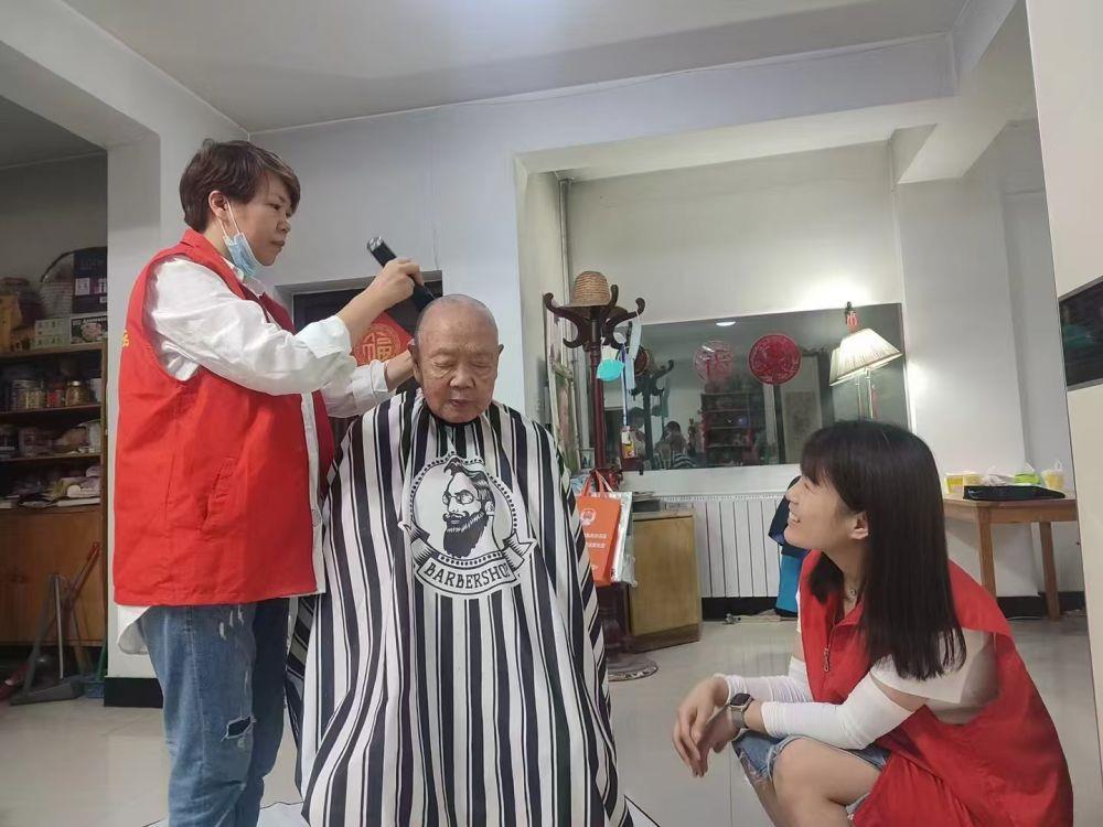 △陜西西安碑林區(qū)黃雁社區(qū)的工作人員和志愿者上門(mén)為留守老人提供剪發(fā)服務(wù)。