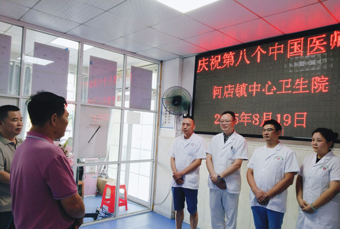 活動(dòng)現(xiàn)場(chǎng)布置簡(jiǎn)潔而莊重,空氣中滿是溫馨與敬意。左洪波首先代表區(qū)衛(wèi)健局在致辭中動(dòng)情指出:“何店鎮(zhèn)中心衛(wèi)生院的醫(yī)師團(tuán)隊(duì),是轄區(qū)群眾健康最堅(jiān)實(shí)的‘守門人’。長(zhǎng)期以來(lái),大家始終以‘敬畏生命、救死扶傷、甘于奉獻(xiàn)、大愛(ài)無(wú)疆’的職業(yè)精神為指引,在日常診療的診室里耐心問(wèn)診,在公共衛(wèi)生服務(wù)的鄉(xiāng)村間奔波宣教,在應(yīng)急醫(yī)療保障的關(guān)鍵時(shí)刻挺身而出,用專業(yè)的醫(yī)術(shù)與執(zhí)著的堅(jiān)守,為一方百姓筑起了堅(jiān)實(shí)的健康防線,為基層醫(yī)療衛(wèi)生事業(yè)的穩(wěn)步發(fā)展作出了不可替代的重要貢獻(xiàn)!