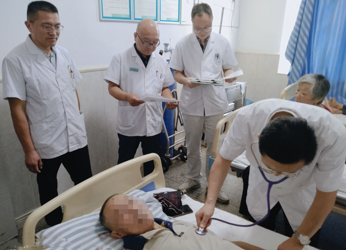 慰問結束后,王小林帶領團隊聚焦臨床實戰,針對衛生院內科病房5例重點病例開展教學查房,包括1例慢阻肺合并房顫患者、1例腰椎間盤突出癥合并心力衰竭患者、2例心肌缺血性心臟病患者及1例冠心病合并心衰患者。查房過程中,醫療團隊結合患者病史、癥狀體征及檢查報告,逐案分析病情特點與診療思路,為基層醫師提供精準指導。