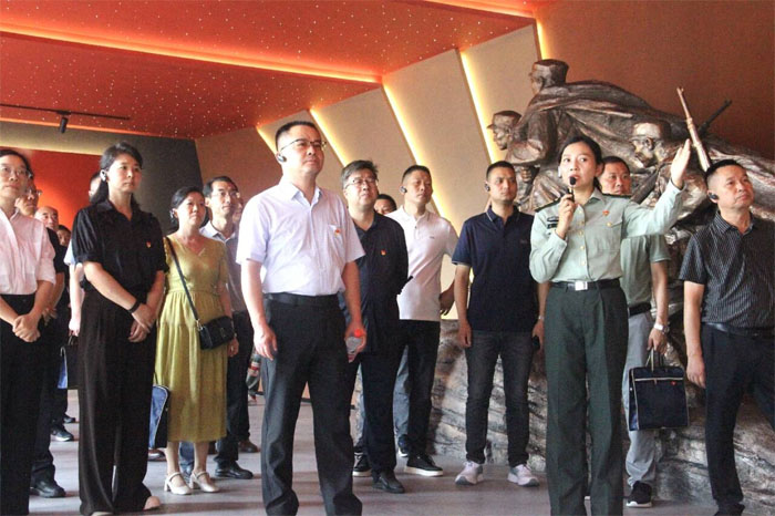 隨后,全體人員走進新四軍第五師革命歷史陳列館。館內,銹跡斑斑的步槍、泛黃的戰地日記、磨損的軍鞋靜靜陳列,無聲訴說著鄂豫邊區軍民浴血奮戰的崢嶸歲月;墻上的黑白照片里,戰士們與群眾并肩勞作、根據地辦學育人的場景,讓“堅守初心、服務人民”的精神內核愈發清晰!懊恳患奈锒际且欢熙r活的歷史,每一個故事都是一次深刻的教育。”