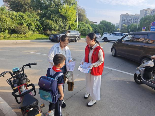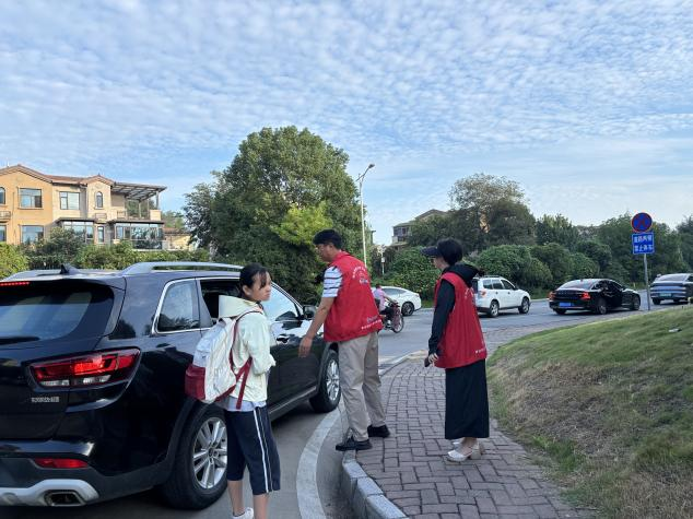 活動中,志愿者身著“紅馬甲”在校門周邊主要路口和路段,有序疏導車輛,引導學生安全過馬路,提醒家長即停即走,有效緩解開學日高峰時段的交通壓力,確保校園周邊道路暢通、行人安全。