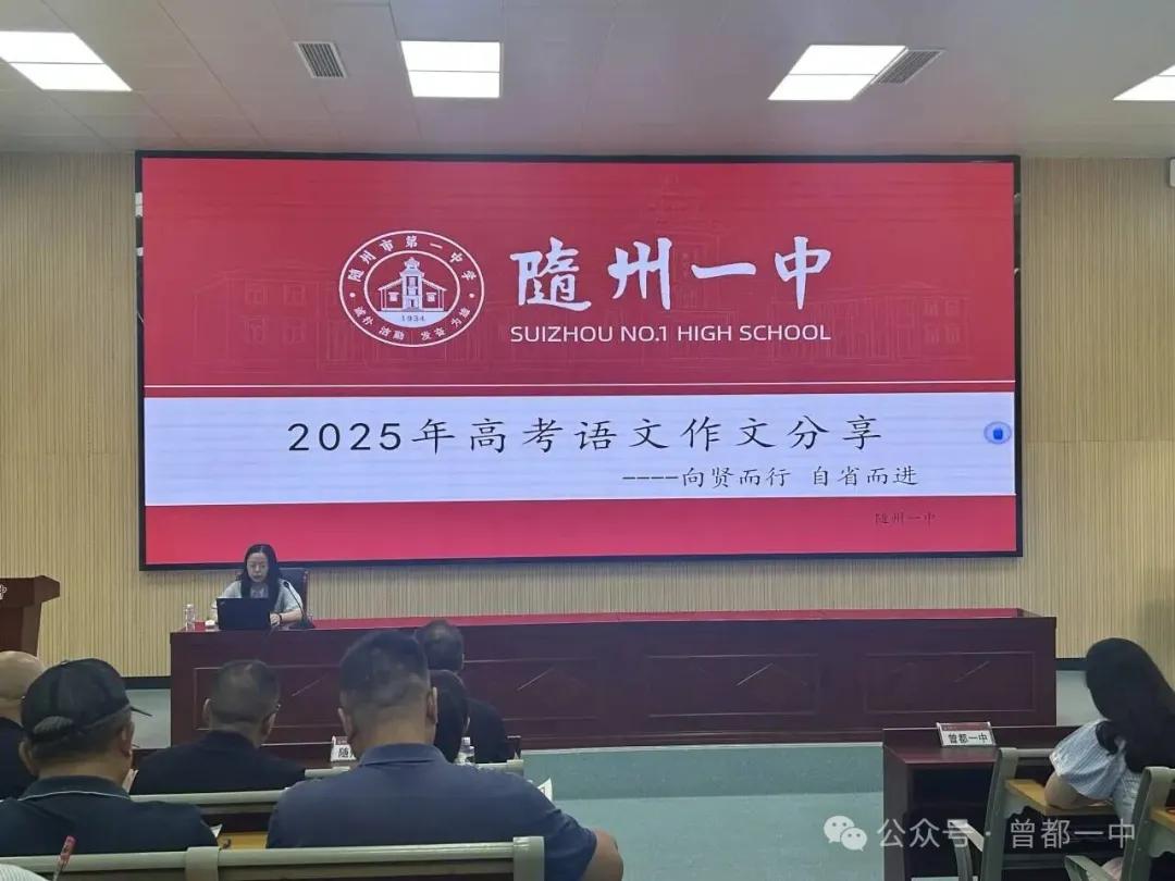 上午8點(diǎn)半,隨州一中資深高考閱卷教師率先以“2025高考試卷評(píng)析暨2026高考備考”為主題,帶來(lái)干貨滿(mǎn)滿(mǎn)的分享。從“聚焦命題特點(diǎn),總結(jié)高考規(guī)律”的宏觀(guān)解讀,到“解構(gòu)經(jīng)典試題,注重新考銜接”的微觀(guān)分析,再到“共享復(fù)習(xí)策略,科學(xué)備考高考”的實(shí)操指導(dǎo),每一個(gè)環(huán)節(jié)都緊扣教學(xué)痛點(diǎn)與備考重點(diǎn)。尤其在作文教學(xué)板塊,主講教師將評(píng)分標(biāo)準(zhǔn)細(xì)化拆解,結(jié)合滿(mǎn)分作文案例剖析立意技巧,更點(diǎn)明了學(xué)生寫(xiě)作中常見(jiàn)的邏輯斷層、素材濫用等問(wèn)題,為曾都一中教師搭建了“從評(píng)卷視角看教學(xué)”的全新認(rèn)知框架。老師們時(shí)而專(zhuān)注記錄,時(shí)而拍照留存,不時(shí)舉手提問(wèn),現(xiàn)場(chǎng)研討氛圍熱烈,不少教師表示“這份備考指南既有理論高度,又有實(shí)踐溫度,為接下來(lái)的教學(xué)指明了方向”。