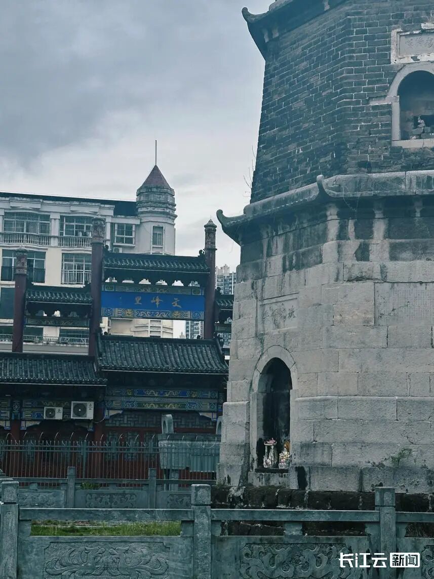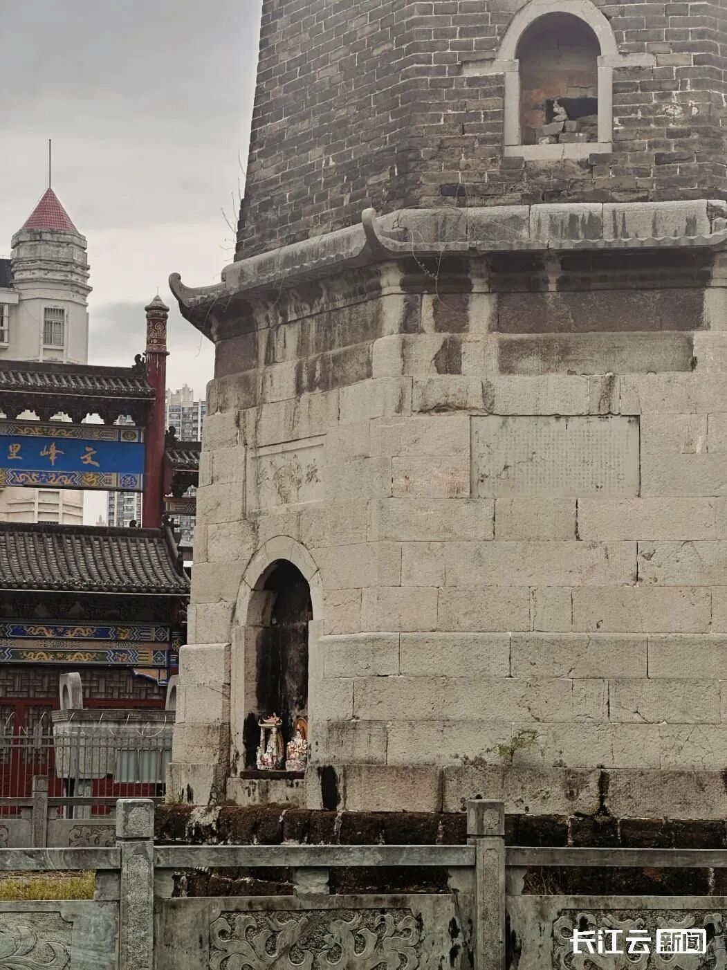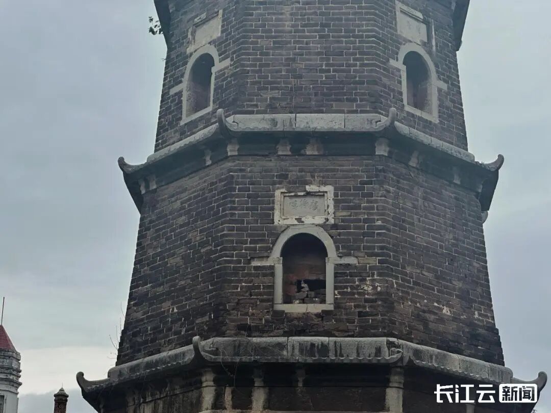 走近塔身,最先被觸動的是它規整又獨特的形制。塔高25米,不算高聳入云,卻憑著七層遞進的層次,透出中式建筑的韻律感;八面體的塔身用青磚砌就,每一塊磚都帶著歲月的包漿,雨水沖刷的痕跡在磚縫間暈開,成了天然的紋路。