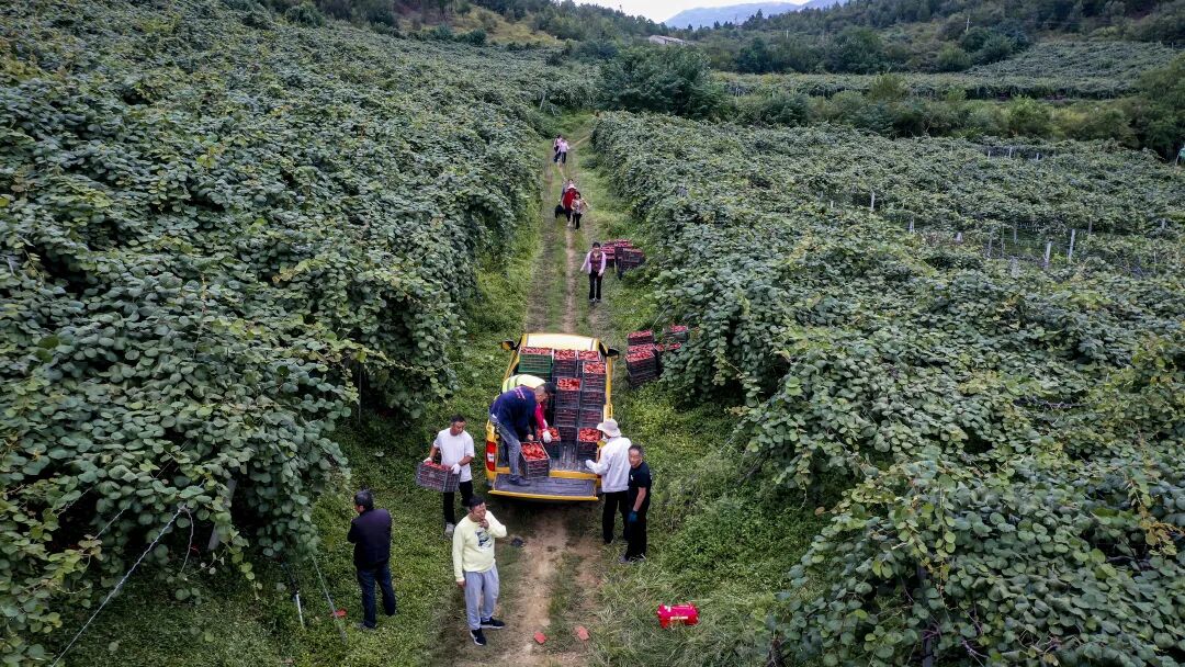 接送采摘村民的中巴車,將獼猴桃從果園往外運的三輪車、皮卡車,冷庫前上貨的叉車,等待裝貨的大貨車,收購商的私家車……連日來,廣水市蔡河鎮桃李飄香獼猴桃種植基地,每天各類車輛往來。近4000畝獼猴桃迎來豐收季,每天近200人在果園內搶時采收、運輸,豐收的場景十分熱鬧。