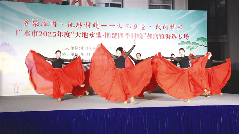 舞臺不夠華麗,上臺的也非專業演員,但他們全情投入的唱跳傳遞出享受舞臺的生命力,臺下觀眾或坐或站或蹲,但都津津有味地看著,不時報以響亮的掌聲。9月15日晚,2025年度隨州市“大地歡歌?荊楚四季村晚”廣水市郝店鎮專場競演舉行,現場氛圍熱烈,鄉土文化自信在這一刻具象化。