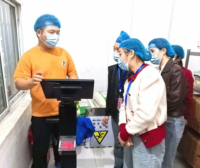 向家長展示餐品留樣柜,介紹學!懊坎痛巍⒚科贩N必留樣、密封冷藏48小時”的嚴格規定,確保留樣記錄完整可溯。家長依次參觀主食庫與副食庫,了解物資分類存放等情況。演示電子秤及信息化出入庫操作,直觀展現食材先進先出、有序周轉的管理模式,確保食材新鮮可控。在烹飪區,帶領大家觀看烹飪全流程;在售賣區,重點介紹保溫車的密封保溫設計,確保餐品在配餐過程中始終處于適宜溫度。