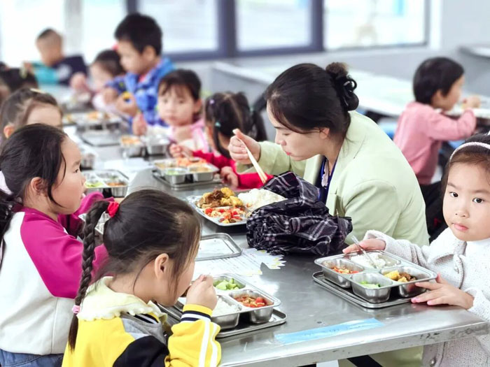 參觀結束后,家長觀摩低年級學生的分餐流程。學校負責人就家長關心的菜品搭配、營養均衡、餐溫保持等問題進行細致地溝通。家長掃碼取餐,與孩子們共進午餐,感受餐品口感與溫度,直觀體驗菜品質量。活動最后,學校向家長發放滿意度調查問卷表,征求家長對學校餐飲服務的意見和建議。