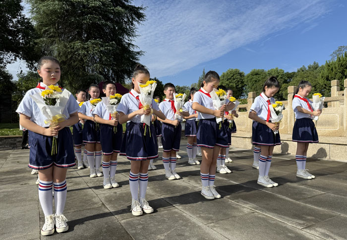 最后,孩子們手捧鮮花,彎腰、輕放、凝視……動作莊重而輕柔。每一束鮮花,不僅僅是哀思,更是一個“未來”對“過去”的獻禮,是孩子們對創造并守護了今日盛世的先烈,最崇高的敬意。