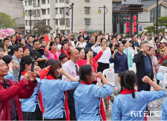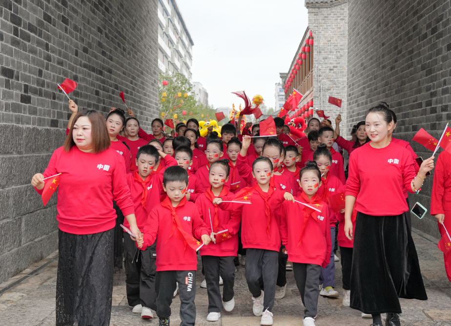 傍晚時分,草甸子街已人頭攢動,南關牌坊下早早聚集了等待活動開場的市民?!敖鹎炞鎳币箞鲅莩鲋?,老中青三代表演者同臺獻藝,既有經典紅歌,也有流行金曲,滿足不同年齡段觀眾的喜好。“活動太豐富太精彩了,孩子看得入了迷,這才是國慶該有的氛圍!”隨州市民陳鋒將孩子背在肩頭,一邊往前走動一邊笑著說。