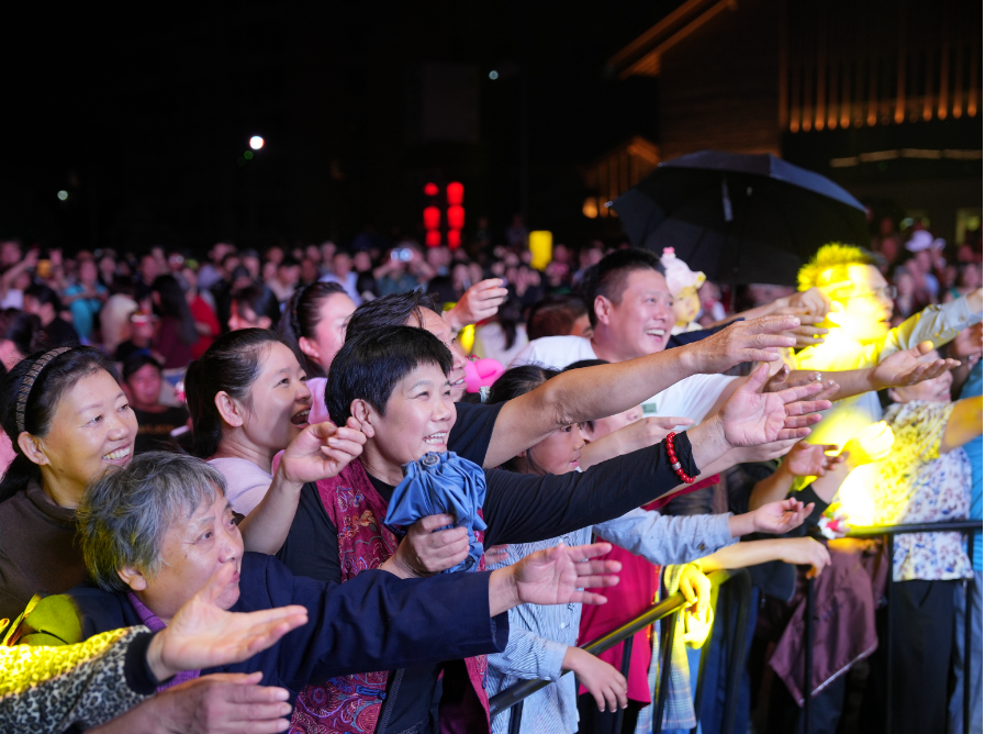 除了舞臺上的節目“給力”,舞臺下的觀眾們也是熱情洋溢,情緒價值“拉滿”,大家紛紛舉起手機閃光燈,隨著旋律輕輕搖晃,宛如一片“星光海洋”。“這些歌太有感染力了,唱到心坎里了!”來自襄陽的游客王齊潤忍不住跟著合唱,“第一次來隨州的草甸子街,沒想到趕上這么精彩的演出,這趟隨州之行太值了。”