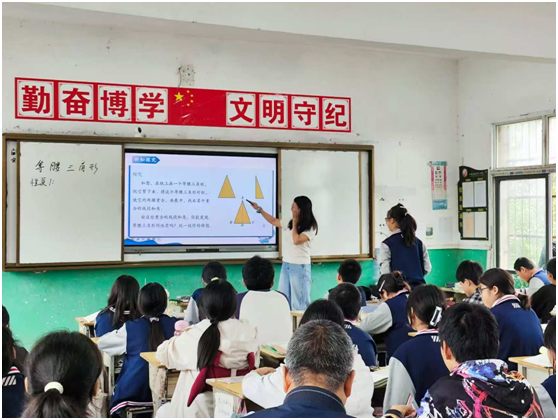 在教學(xué)展示環(huán)節(jié),5位青年教師各展所長:數(shù)學(xué)組,趙俊慧老師聚焦數(shù)學(xué)核心課程《等腰三角形》,結(jié)合學(xué)情與教學(xué)目標(biāo)設(shè)計(jì)教學(xué)。文綜組仇婷老師開設(shè)趣味勞動(dòng)實(shí)踐課《草編扇子》,一根蒲草一把蒲扇,一次實(shí)踐一場(chǎng)傳承,學(xué)生在動(dòng)手操作中感受著非遺草編傳統(tǒng)文化魅力。理綜組彭森老師則以生物課《用簡(jiǎn)易裝置制作酸奶》為載體,帶領(lǐng)學(xué)生開展“美味無限”的實(shí)踐探究,將理論知識(shí)轉(zhuǎn)化為實(shí)際技能;劉秋元老師帶領(lǐng)學(xué)生在課堂上動(dòng)手探索《串并聯(lián)電路電壓規(guī)律》,燈光閃現(xiàn)間都是科技的魔力。語文組,黃舒妤老師致敬經(jīng)典《白楊禮贊》,讓孩子們?cè)诶世实恼b讀聲中感受白楊精神的魅力。