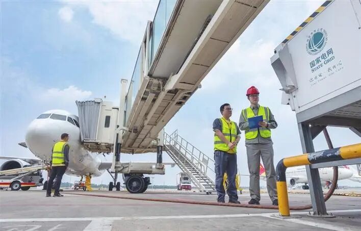 ▲宜昌三峽國際機場全面布局廊橋岸電設(shè)備,為超5500架次航班提供清潔能源。通訊員 王婷婷 攝
