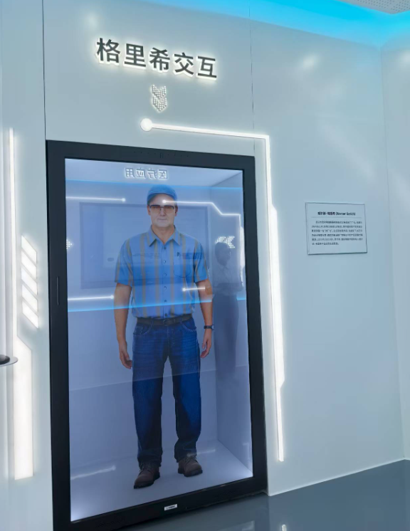 數(shù)字屏幕上,曾任武漢柴油機(jī)廠廠長(zhǎng)的德國(guó)人格里希以“數(shù)字人”的形式“現(xiàn)身”,與參觀者展開(kāi)一場(chǎng)跨越時(shí)空的對(duì)話。